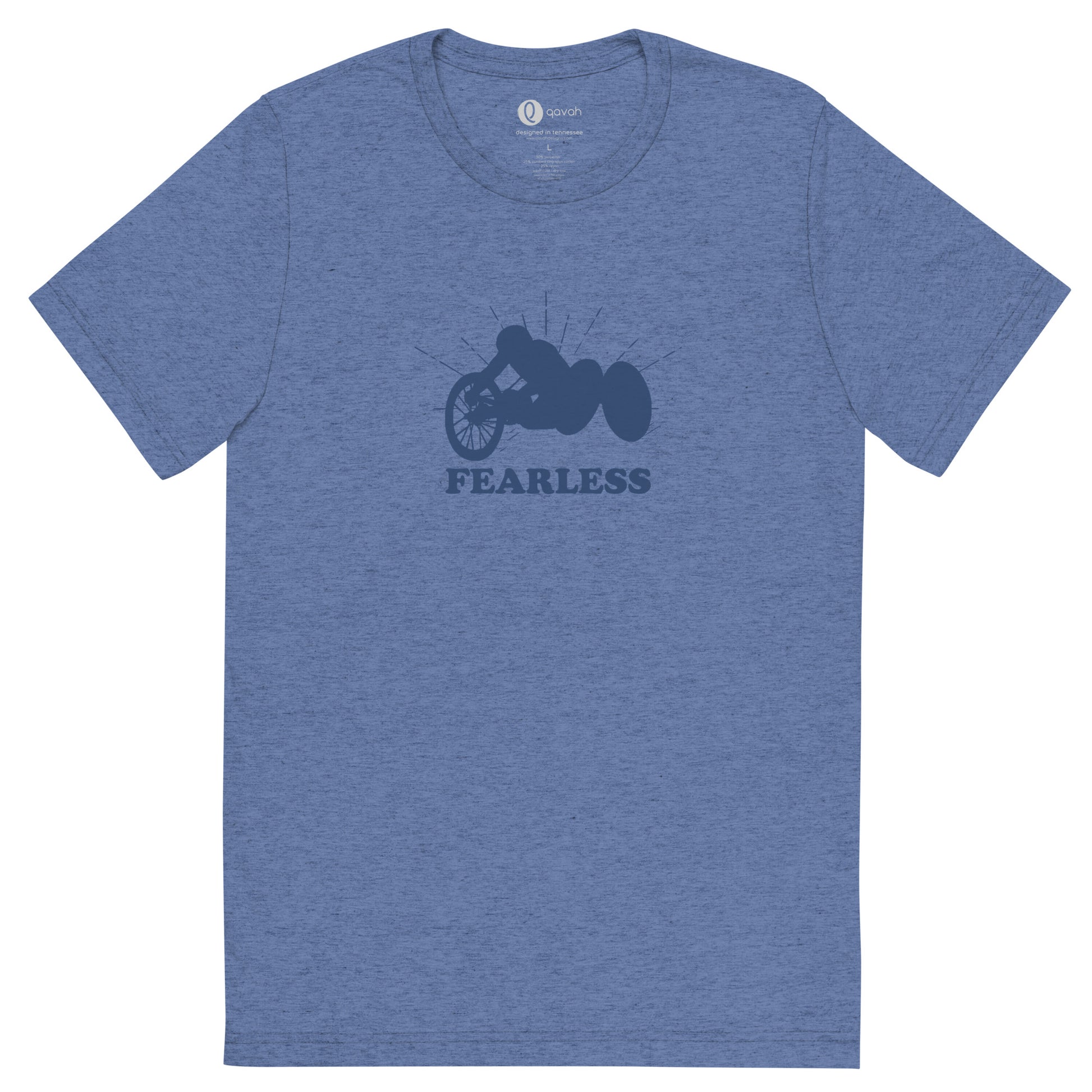 Glide through every challenge with unwavering courage in our Fearless Glide Tee. Featuring a relaxed "FEARLESS" font and the silhouette of a Paralympic triathlete in their race cart, this shirt exudes a sense of calm confidence. Made from a super soft tri-blend material, it's a tribute to the fearlessness that defines Paralympic competitors.