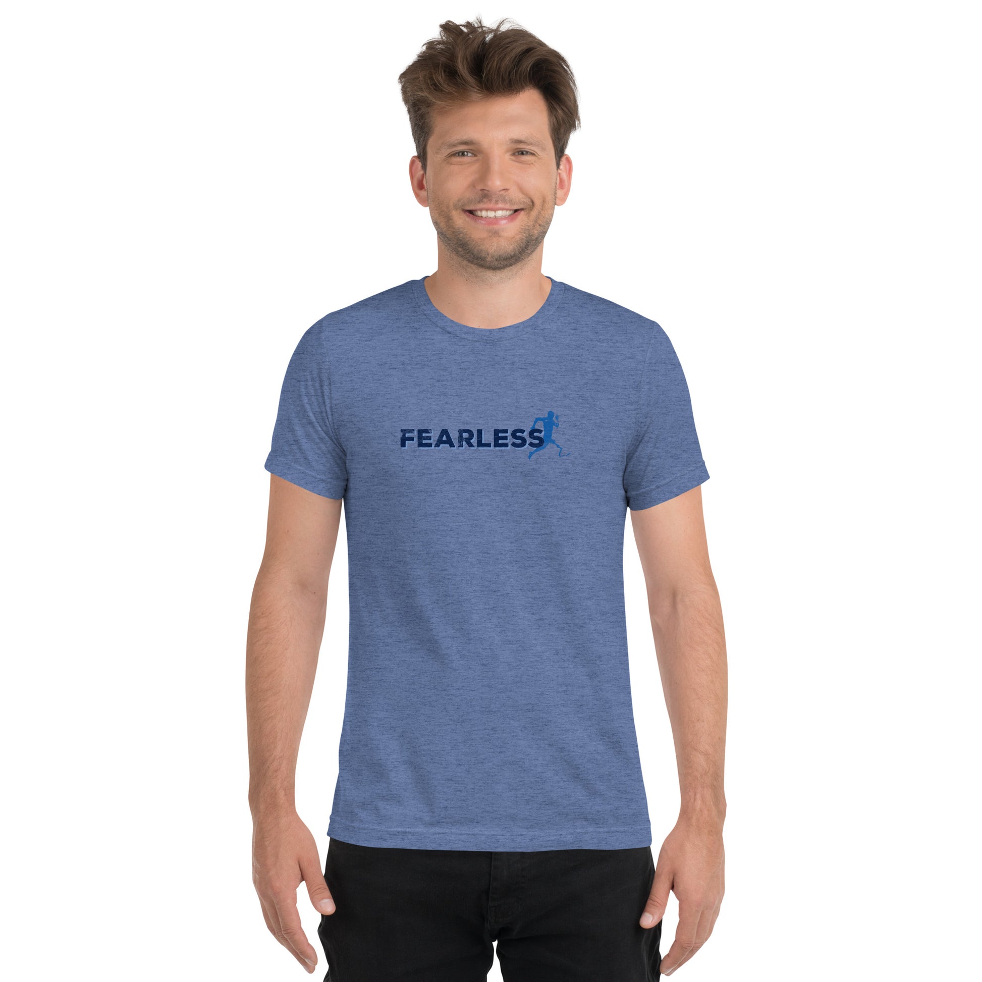 Conquer every stride with fearless determination in our Fearless Sprint Tee. Designed for Paralympic triathletes and runners, this shirt showcases the word "FEARLESS" in a bold, solid blue font, symbolizing the courage to push boundaries. With a dynamic runner silhouette sprinting forward, it embodies the unstoppable spirit of Paralympic athletes.