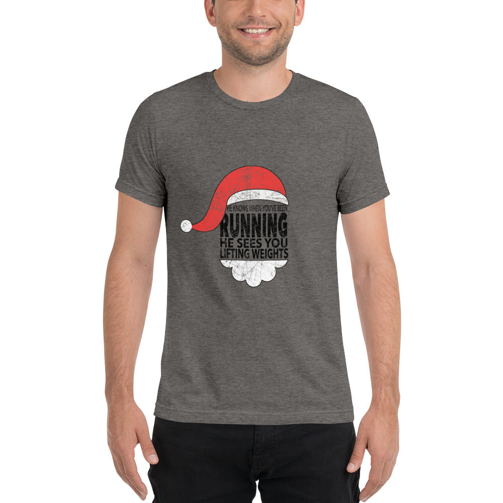 He Knows When You Are Running Holiday Short Sleeve Shirt