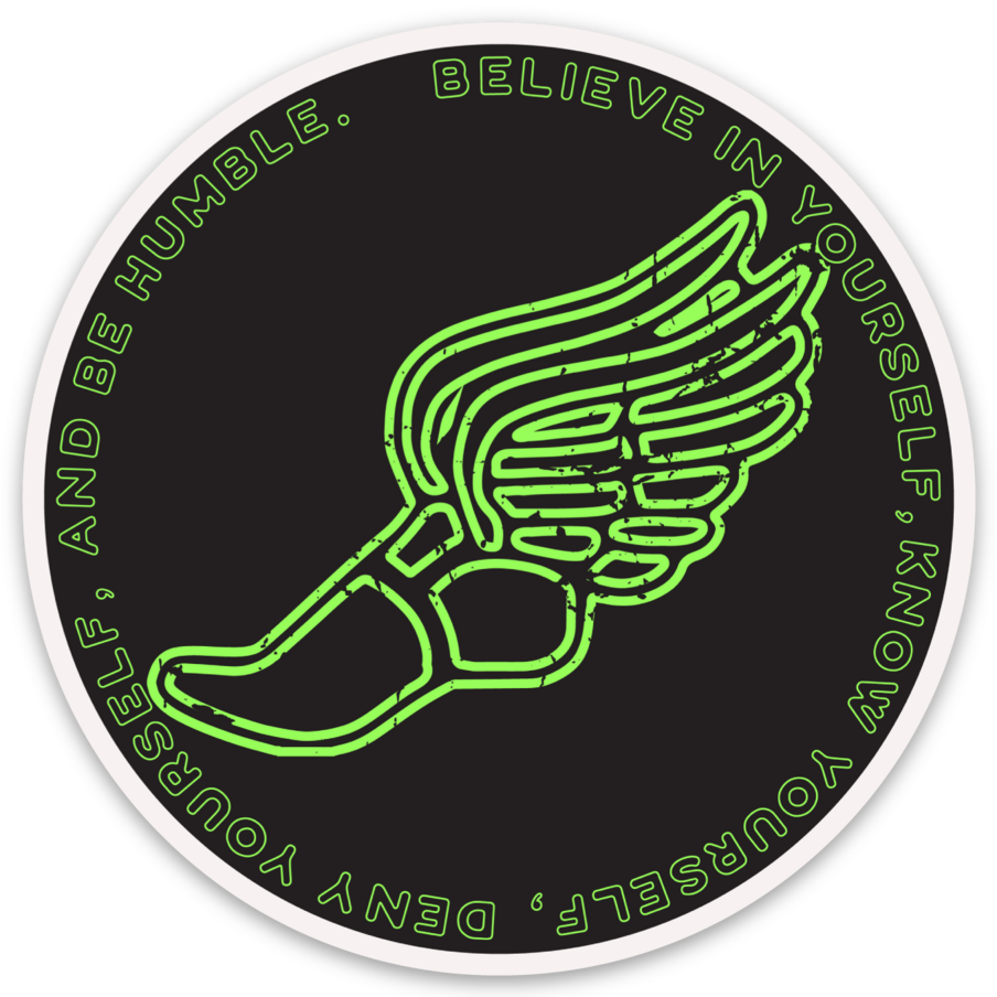 Stick to your principles on and off the track with our John Treacy's Four Principles Round Sticker. Adorned with the vibrant neon green and black design, this sticker is not just a visual statement but a daily reminder to believe in yourself, know yourself, deny yourself, and always stay humble. Add it to your gear, water bottle, or laptop to carry the principles with you everywhere.