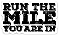 This sticker represents a life mantra. Run the mile you are in. This one, not the last one, not the next one. Only this one!