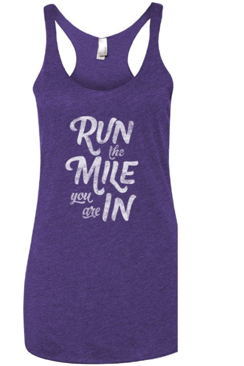You can't rerun the mile behind you and the mile is ahead is yet to arrive. Show your focus on the mile you are in with this super-soft, lightweight, and form-fitting, tank that features a worn distressed version of our Run the mile design.