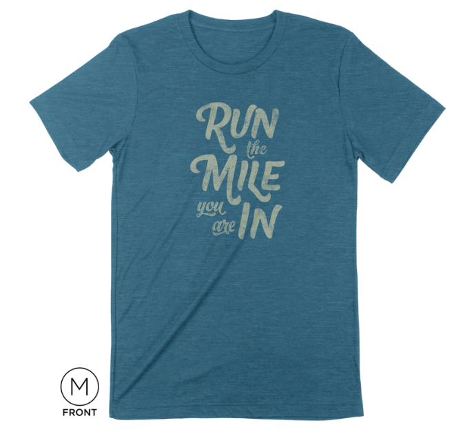 You can't rerun the mile behind you and the mile is ahead is yet to arrive. Show your focus on the mile you are in with this super-soft, durable shirt with a worn and distressed print.