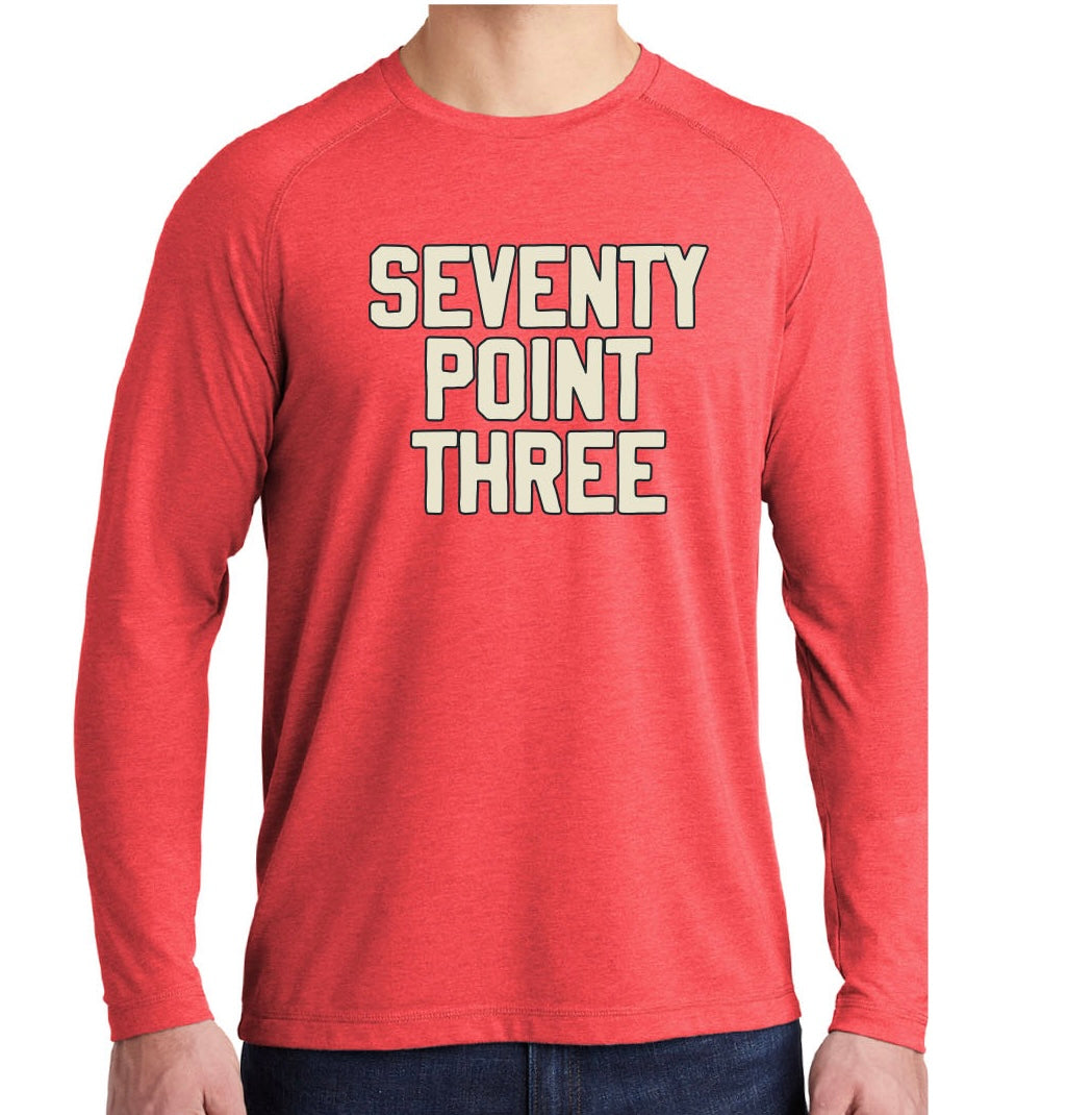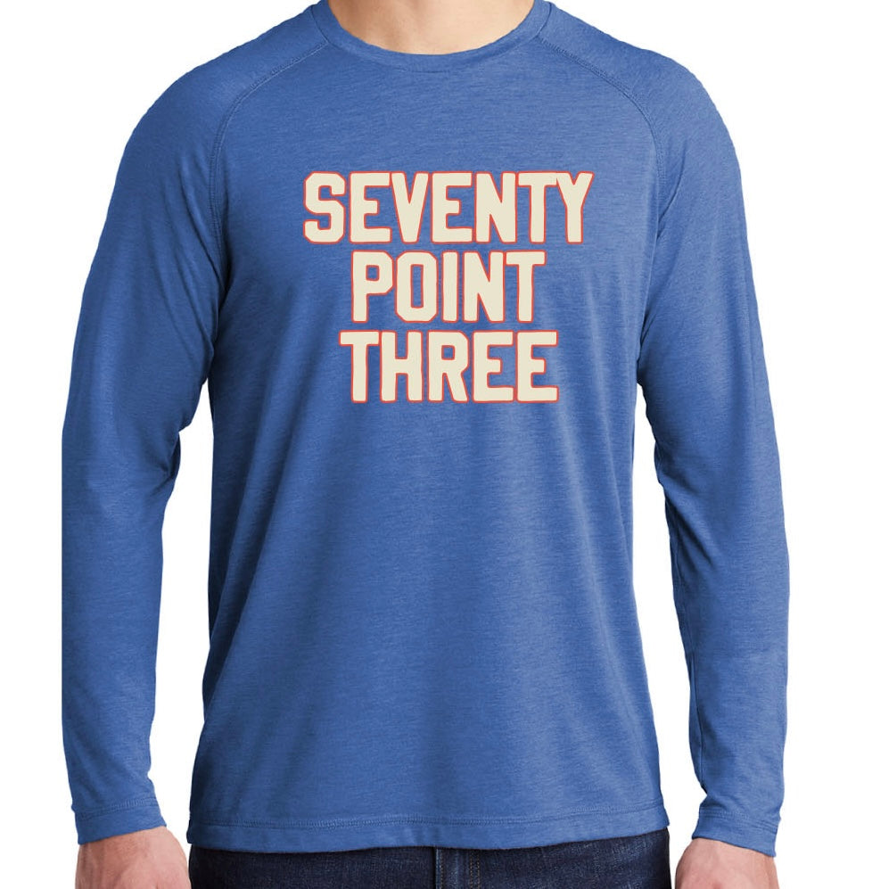 - Bold "Seventy Point Three" varsity design