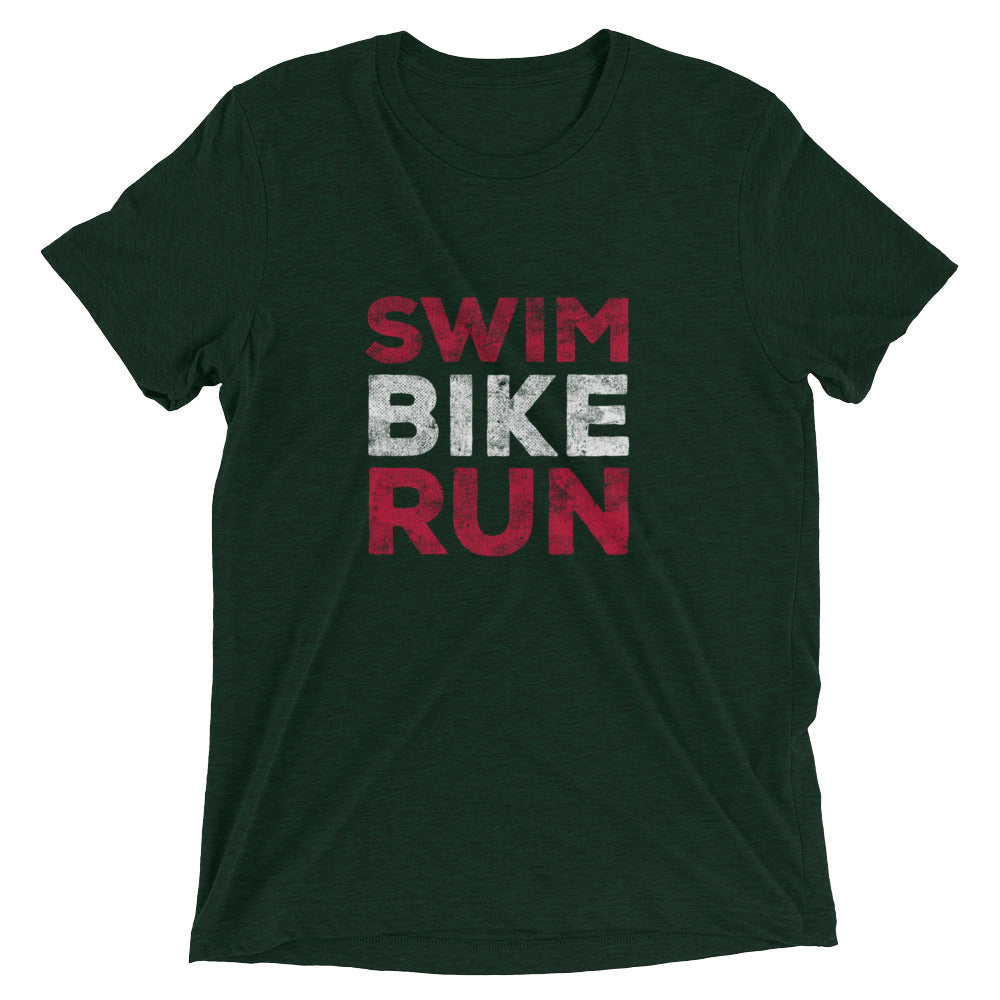 In red and white on many different colors, express yourself with this super soft shirt. You will look podium worthy post race, and you will feel extra comfortable recovering from a long brick.