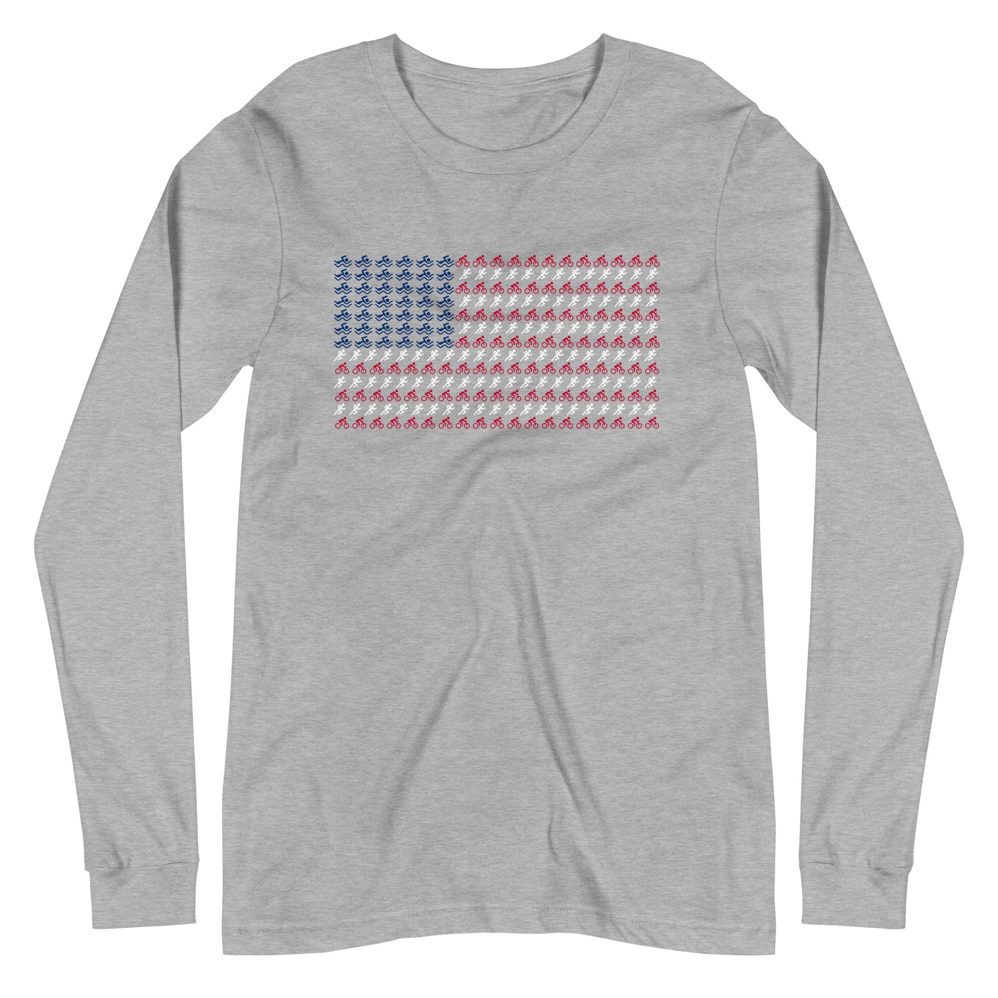 Embrace the changing seasons with our "Triathlete Patriot" Triblend Long Sleeve Shirt. Perfect for those crisp fall days or chilly summer evenings, this shirt combines the best of comfort and style. The USA flag design, composed of runner, bike, and swim icons, adds a patriotic touch to your wardrobe. Stay cozy, show off your triathlete spirit, and radiate American pride wherever you go.