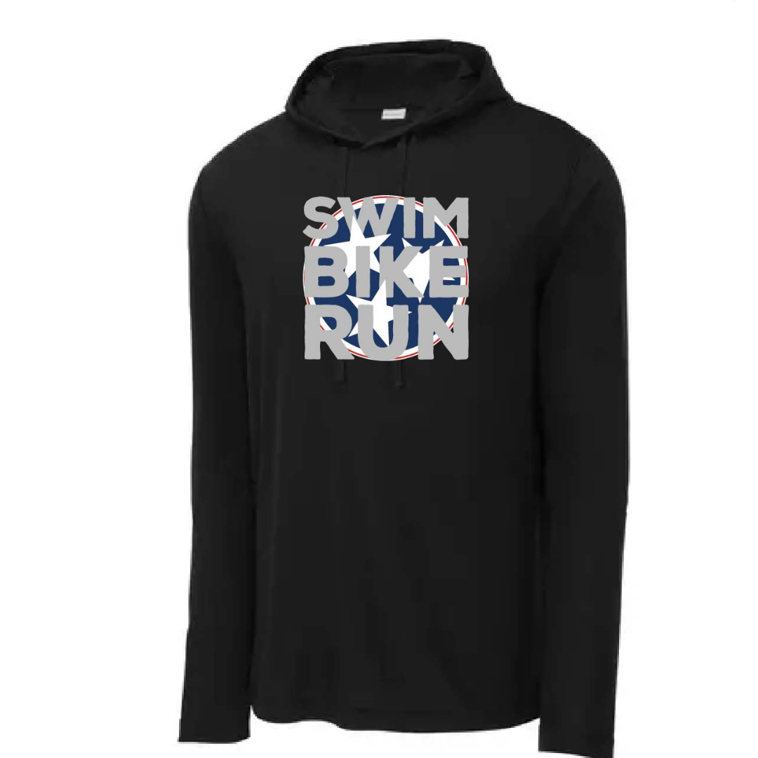 The Tristar edition SWIM BIKE RUN hoodie is built for triathletes who love their gear soft, light, and just a little bit local.