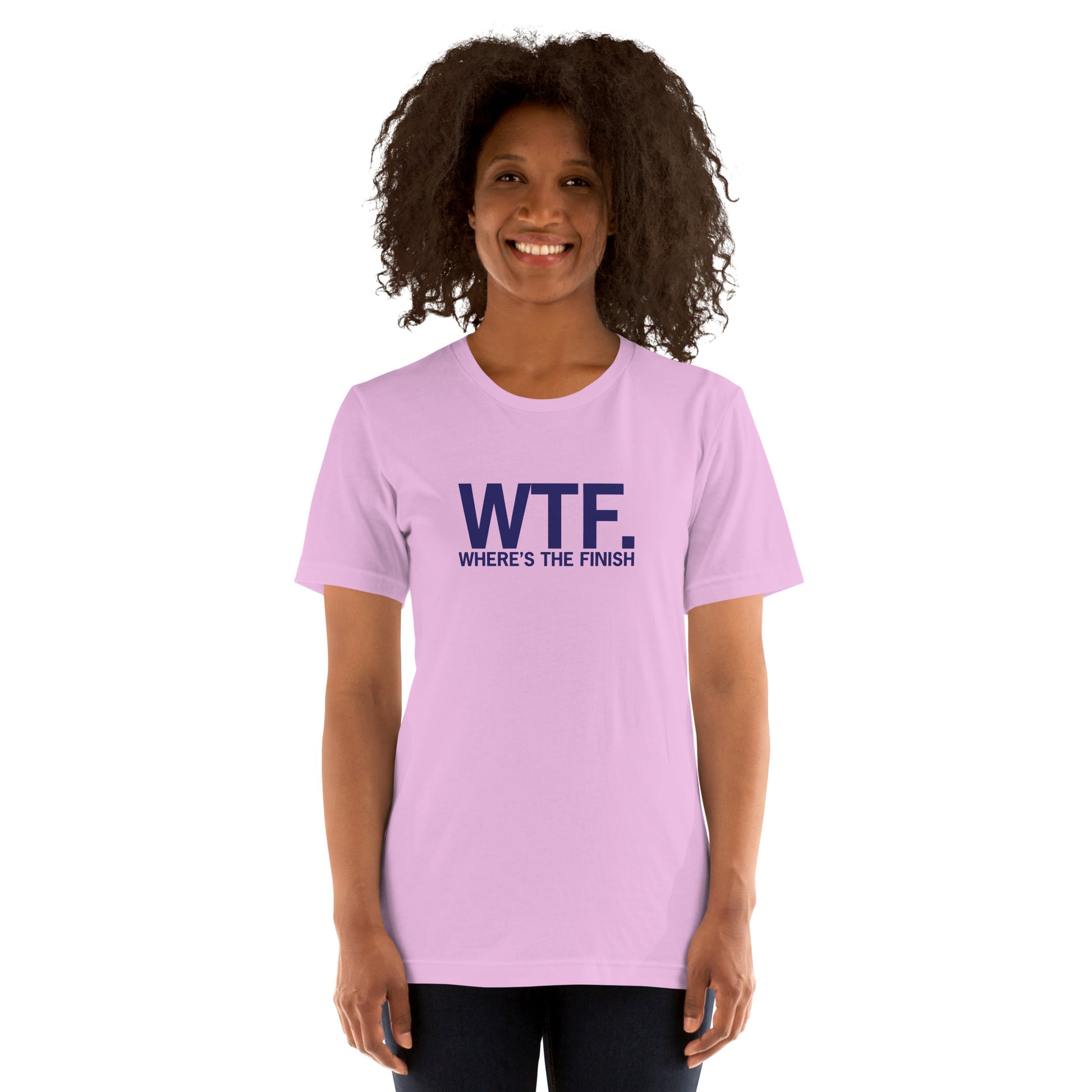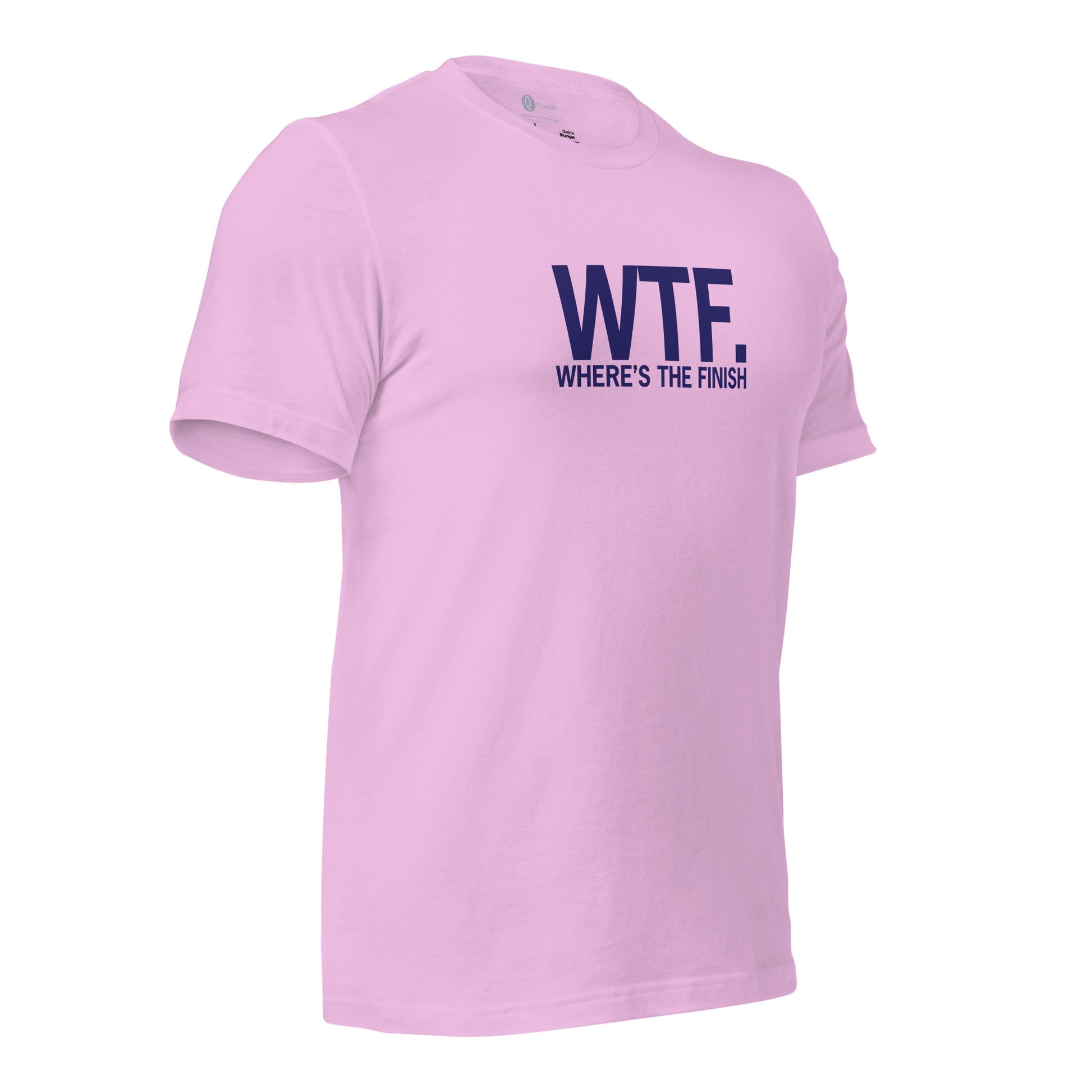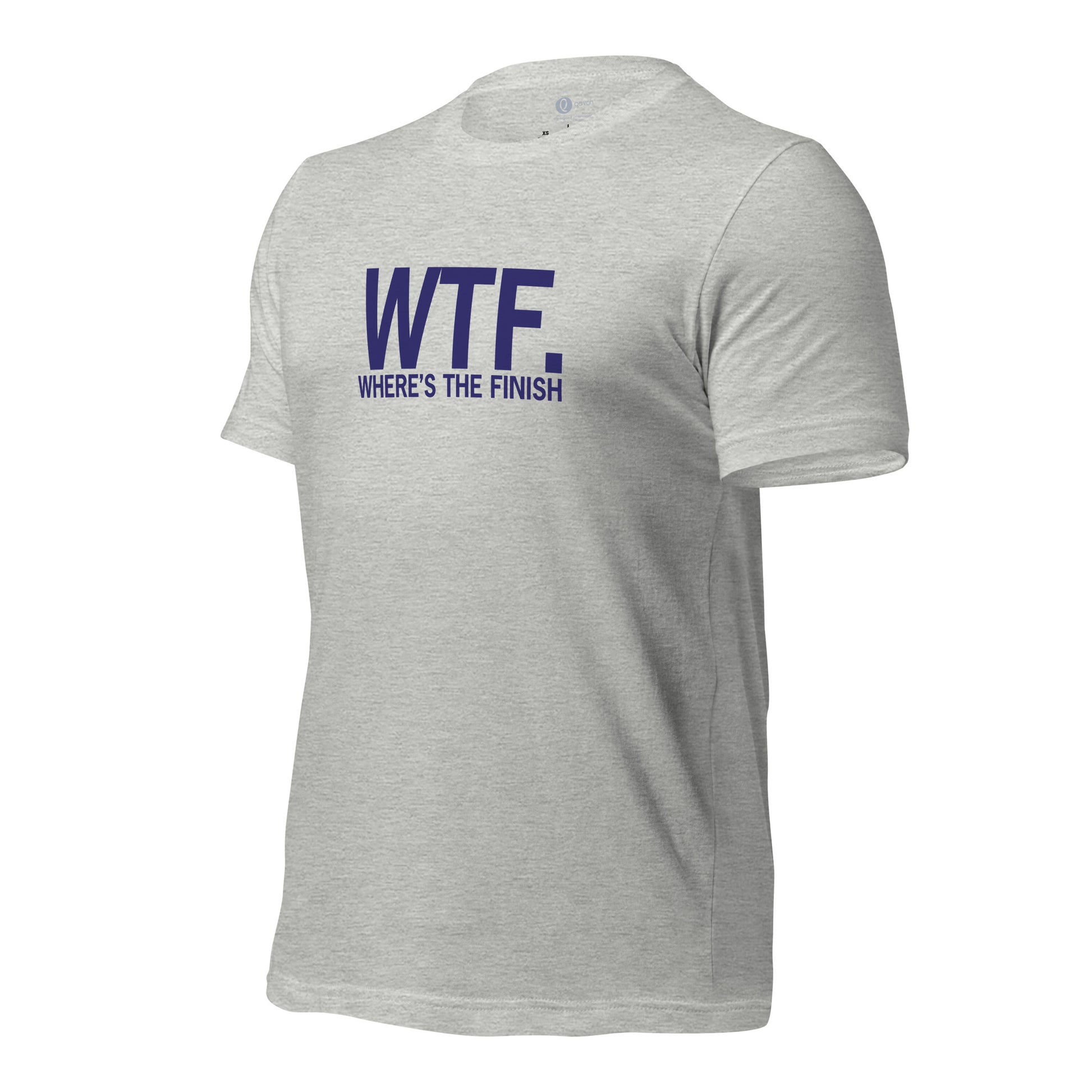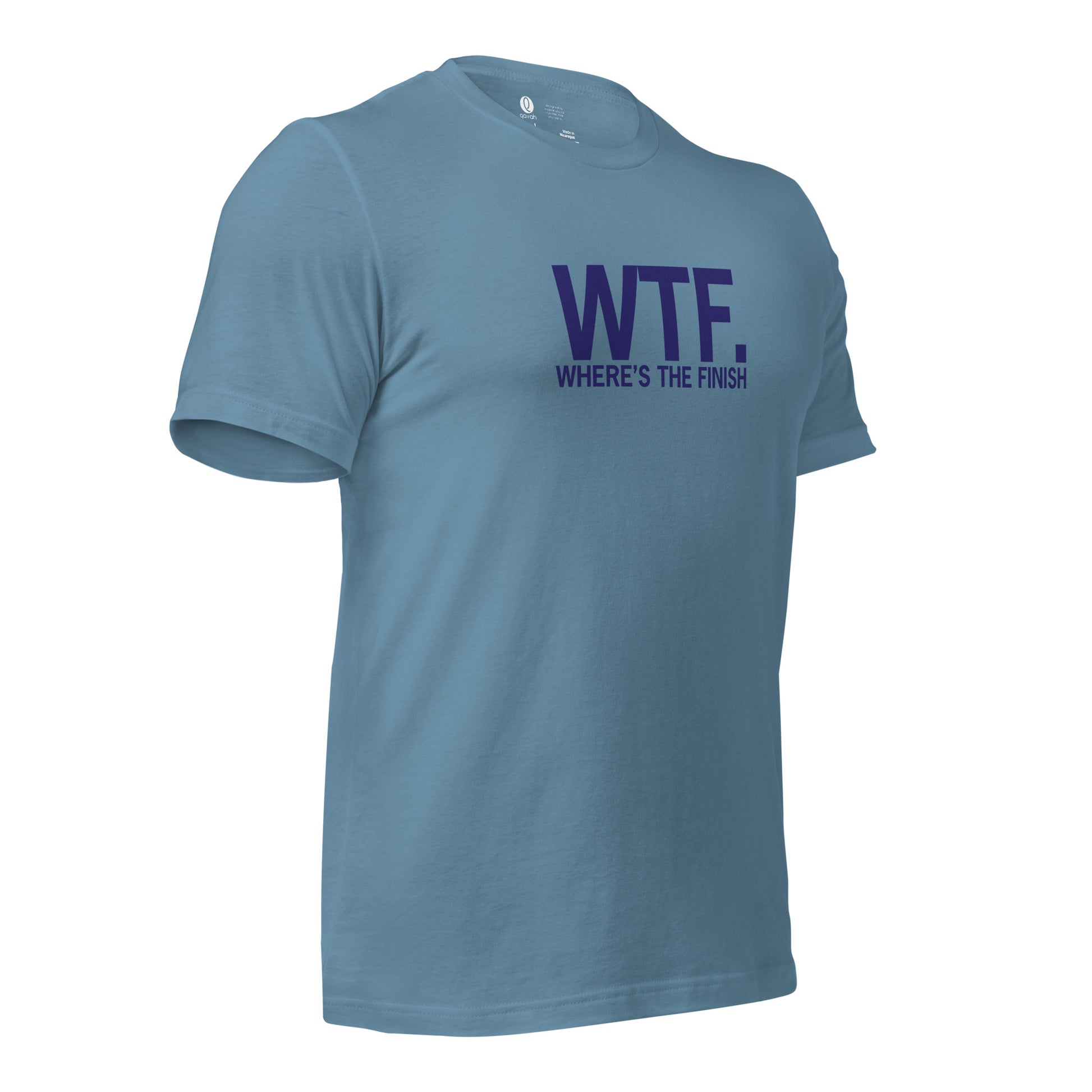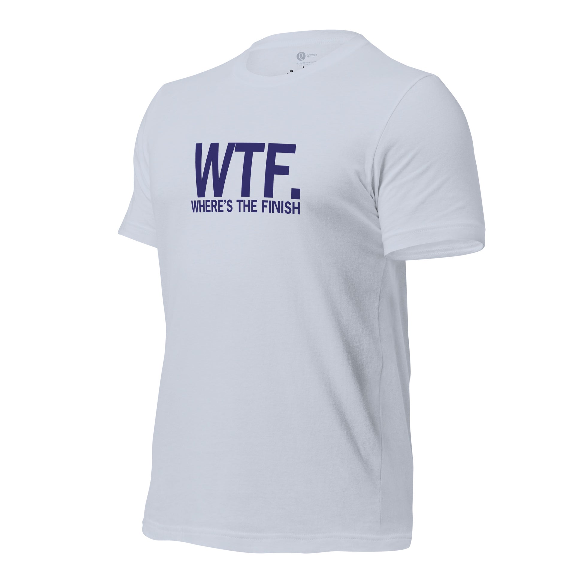Endurance athletes, we’ve all had that moment during a long race where we’re wondering, “Where’s the finish line?” Our "WTF: Where's the Finish?" Shirt captures that feeling with a playful twist. The bold "WTF" across the chest and the cheeky "Where’s the Finish" underneath make this shirt a funny and relatable addition to your race-day gear or post-race recovery outfit.